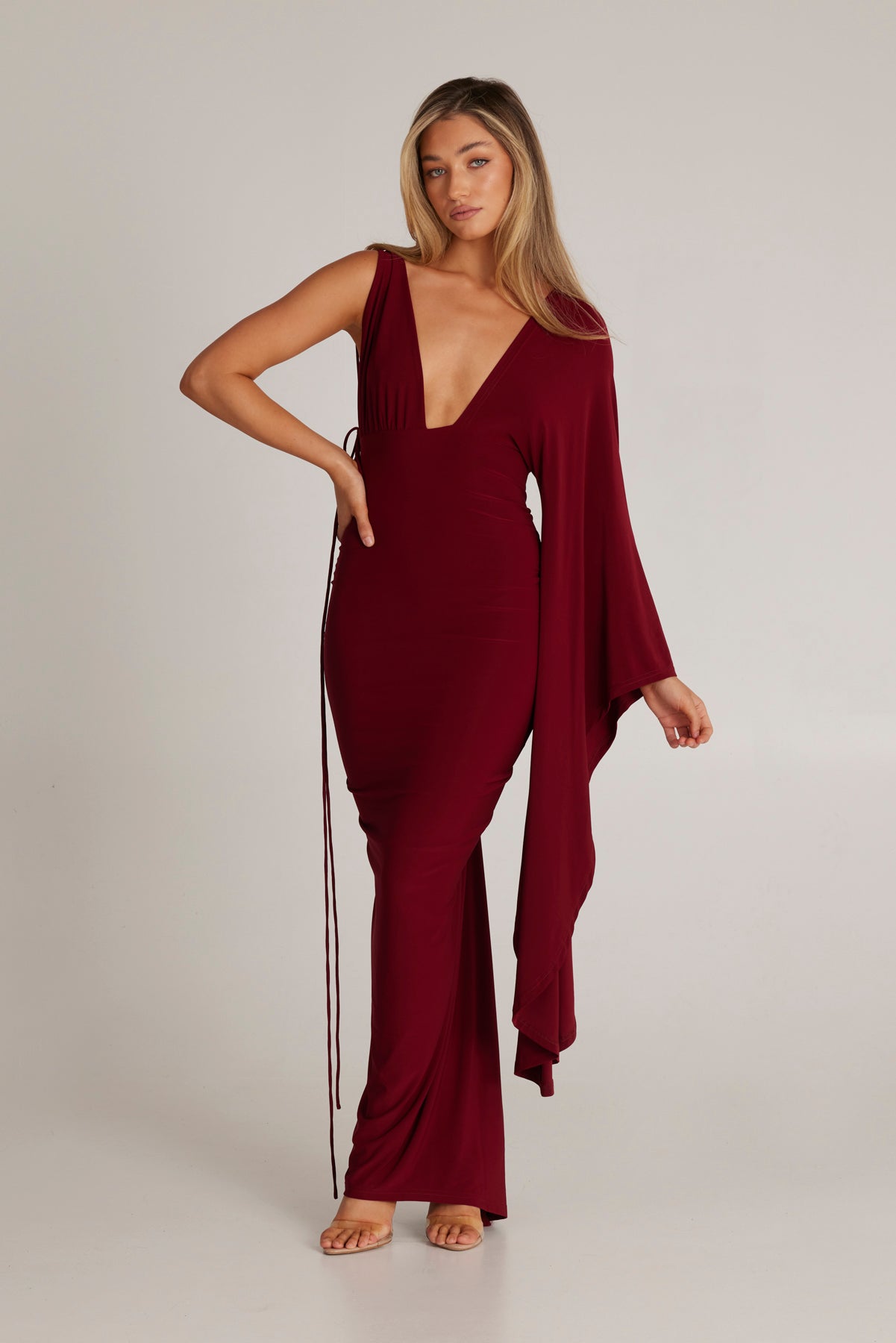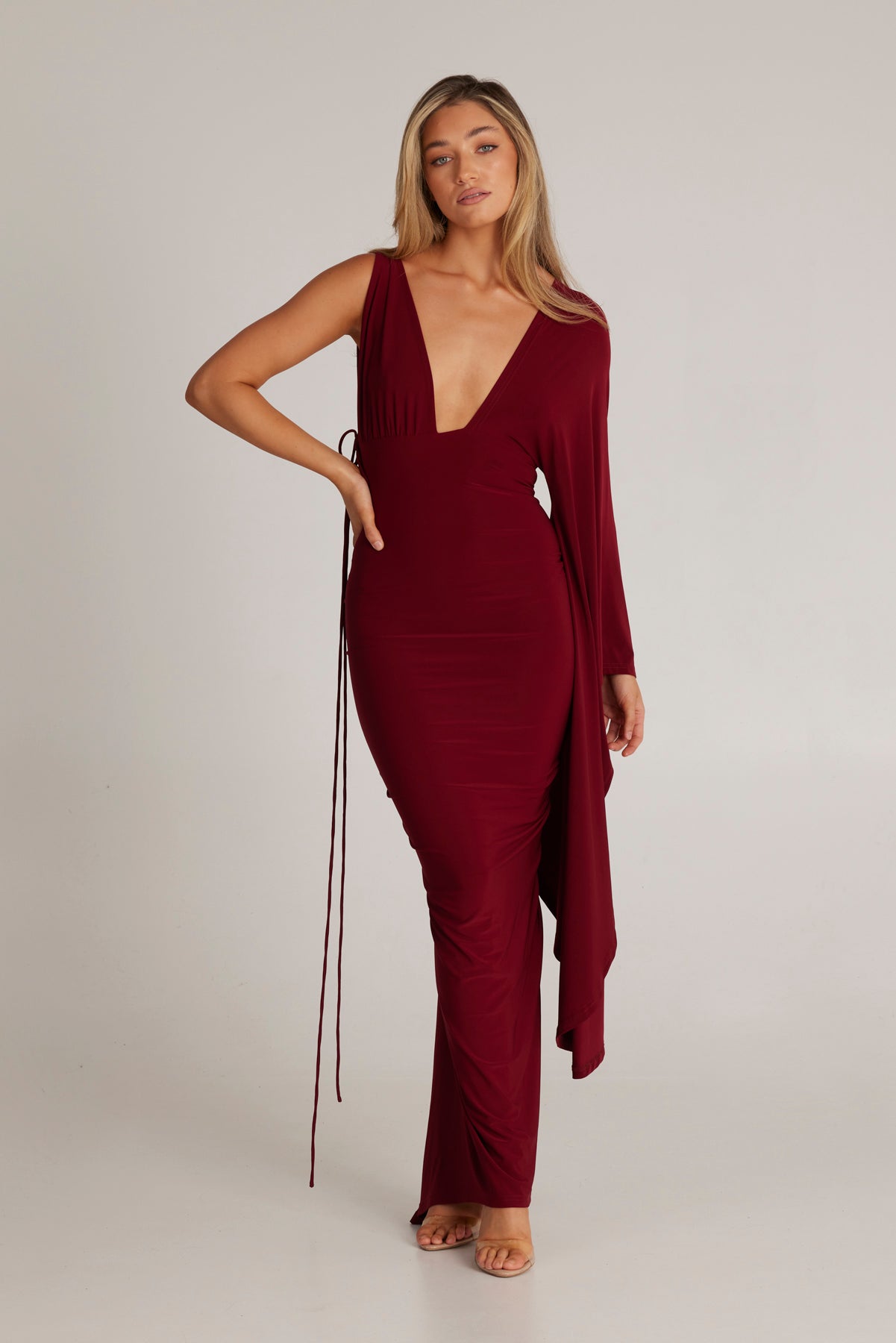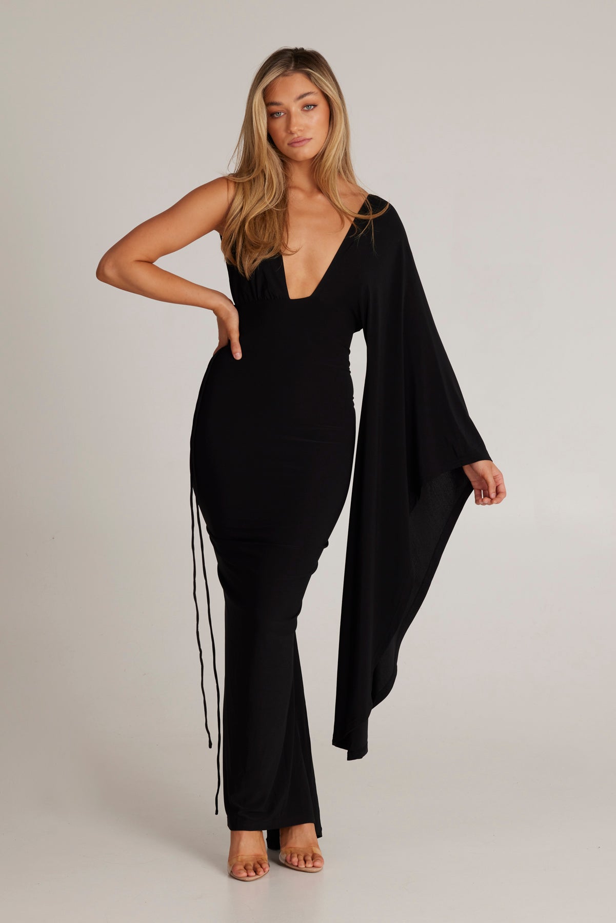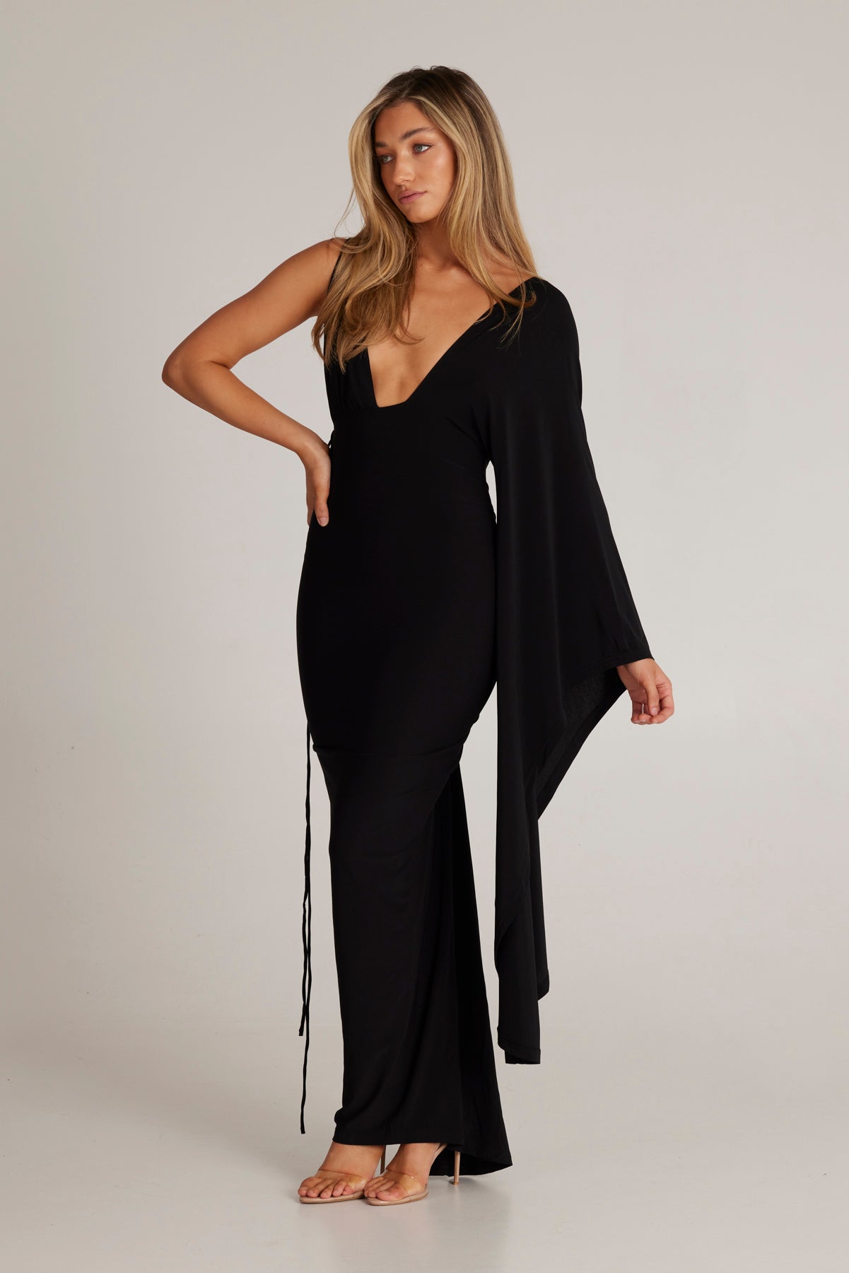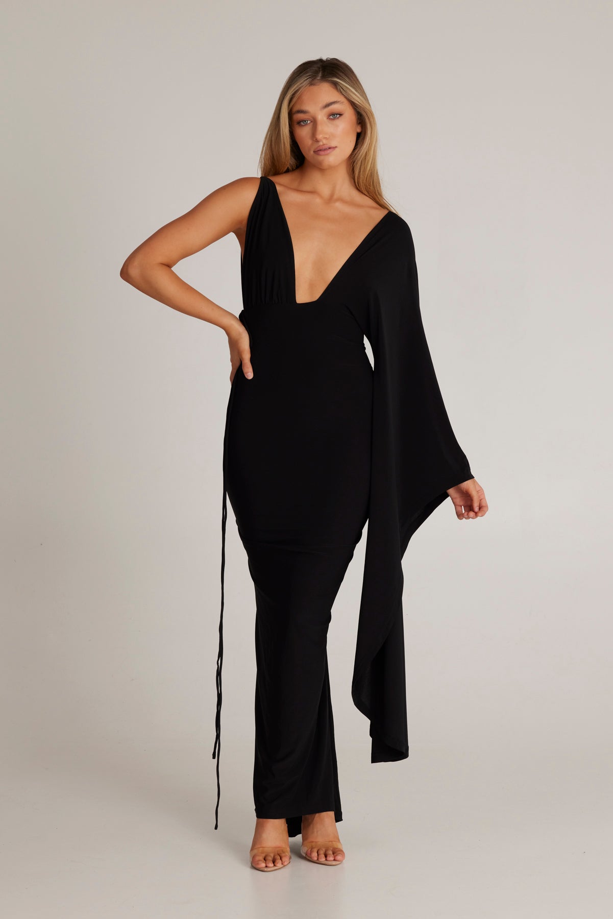 Kliv in i elegansen med Wissa Enkelarmad Klänning med Lång Ärmar, det ultimata statement-plagget för varje speciellt tillfälle. Denna fantastiska klänning kombinerar femininitet och kraft, designad för att få dig att känna dig självsäker och vacker.