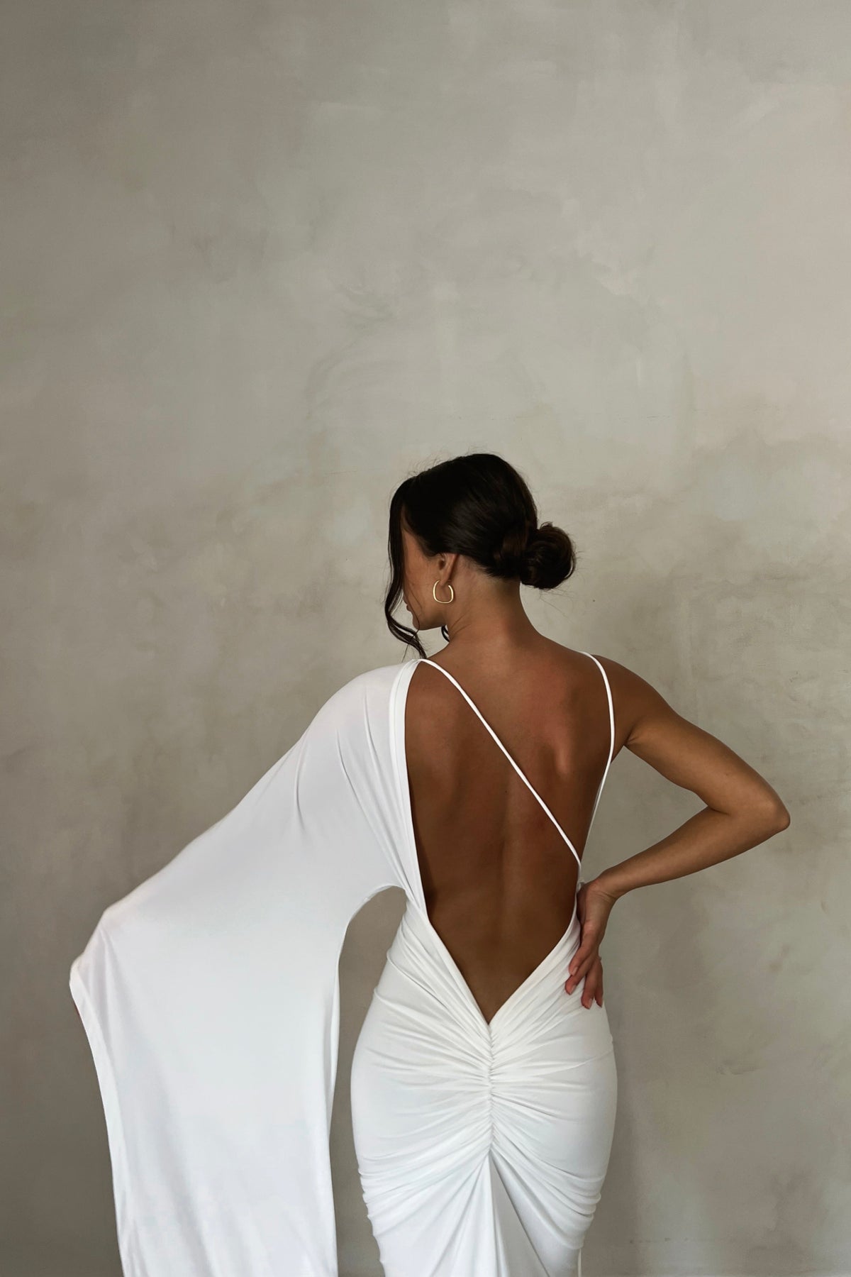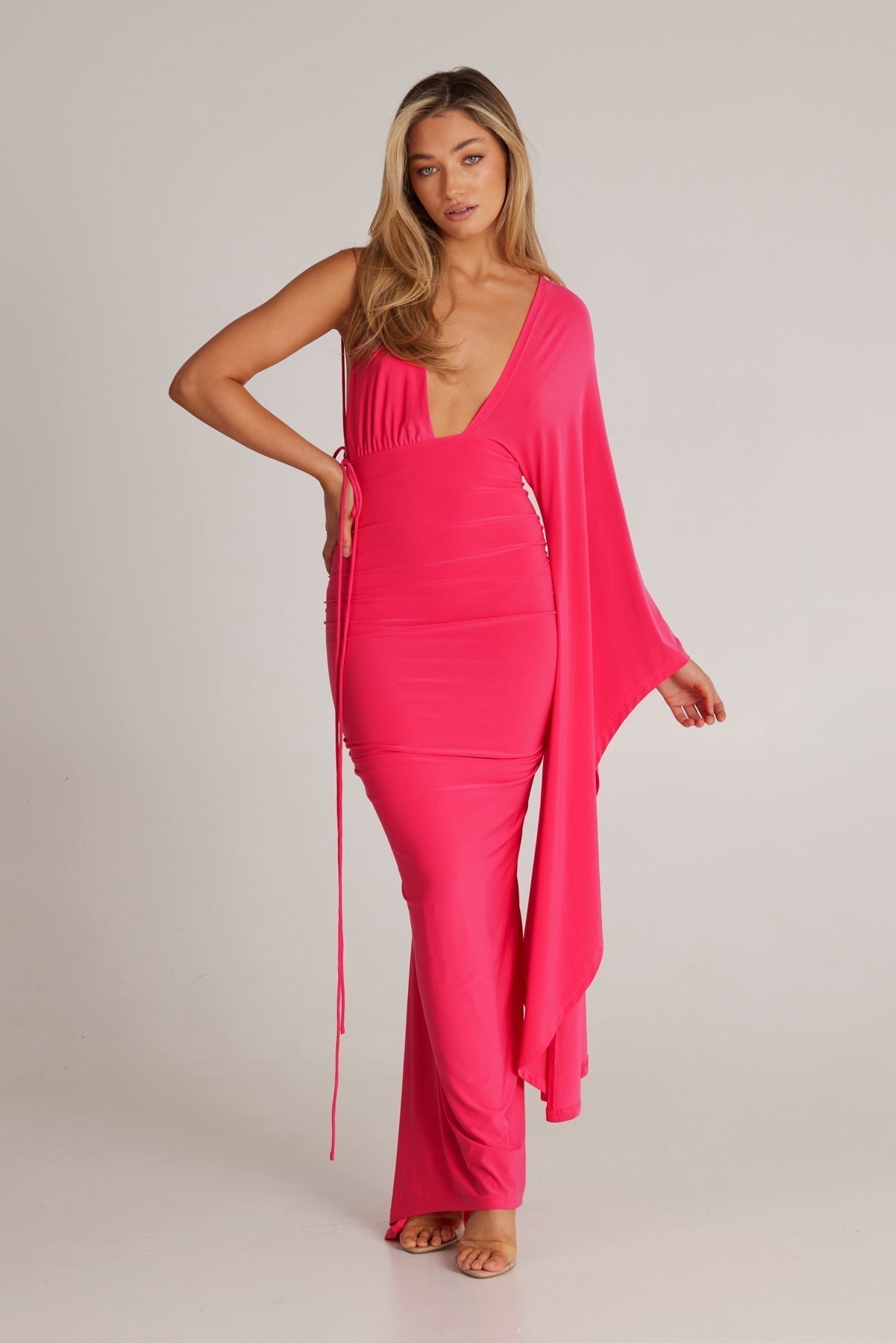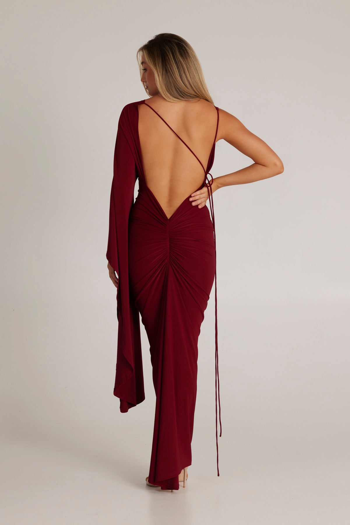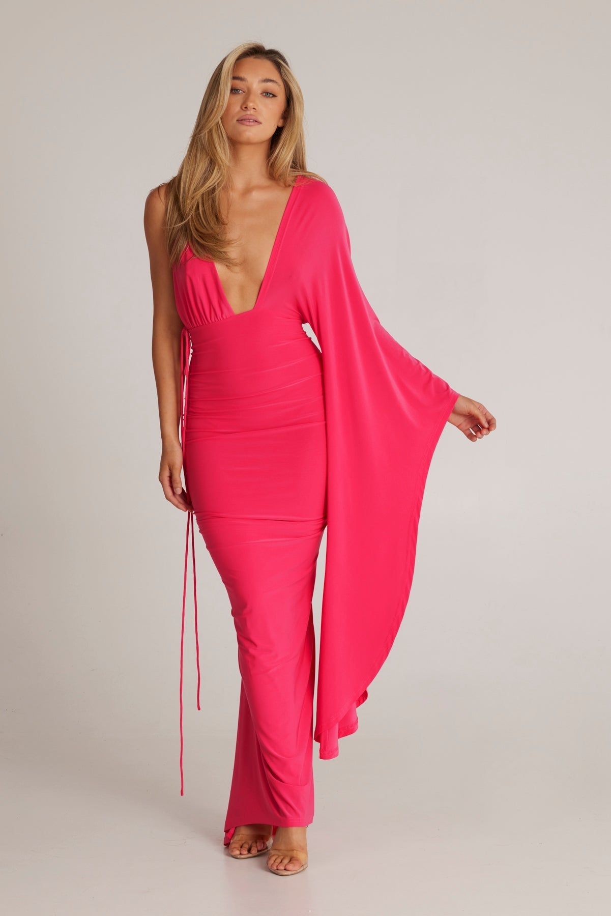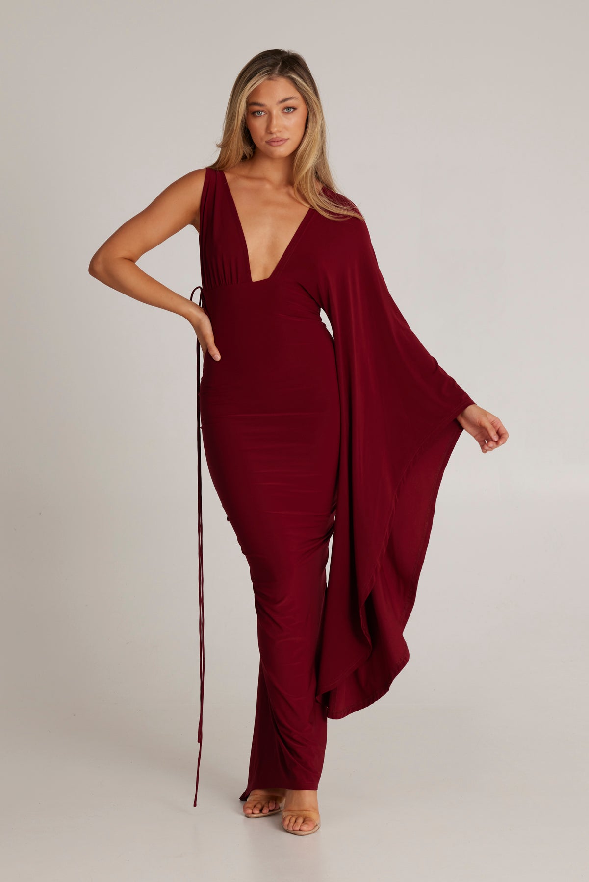 Kliv in i elegansen med Wissa Enkelarmad Klänning med Lång Ärmar, det ultimata statement-plagget för varje speciellt tillfälle. Denna fantastiska klänning kombinerar femininitet och kraft, designad för att få dig att känna dig självsäker och vacker.