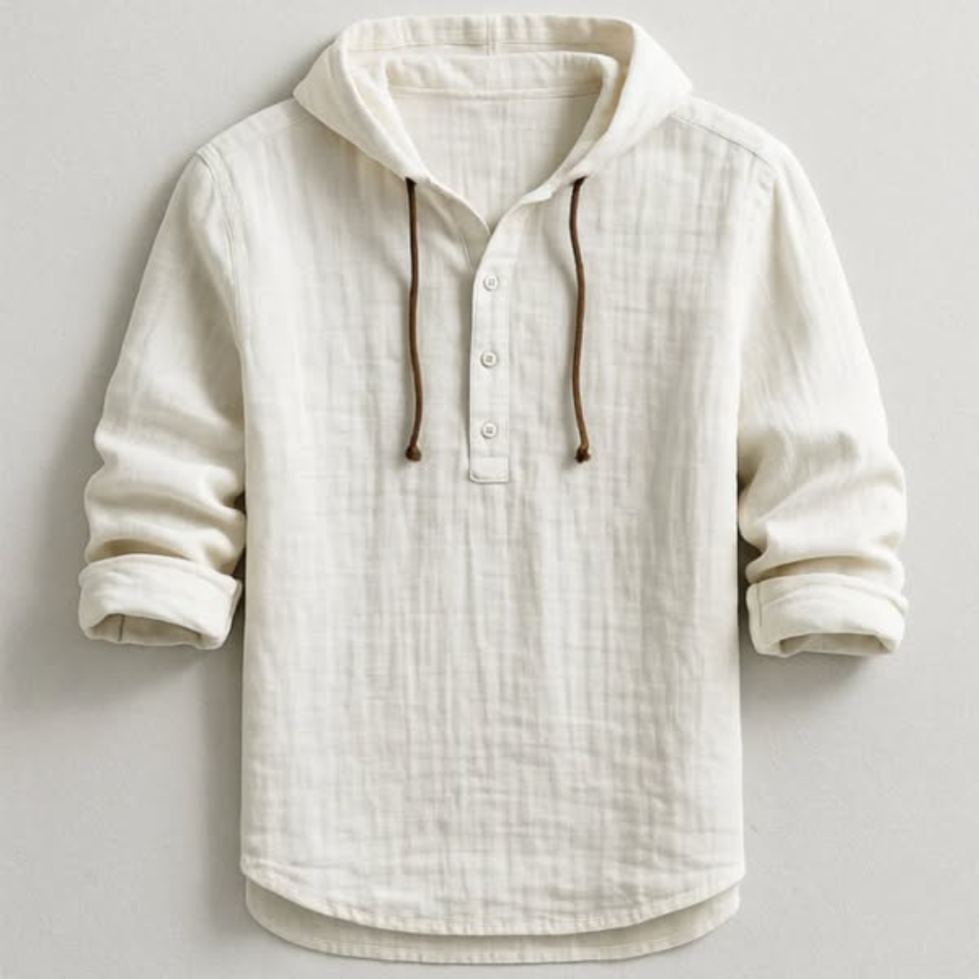 Det lätta och andningsbara materialet ger en mjuk och behaglig känsla mot huden – perfekt för alla årstider. Den justerbara huvan ger en modern och praktisk touch, idealisk för en stil som är både sofistikerad och avslappnad. Passar lika bra för en aktiv dag som för en lugn kväll.