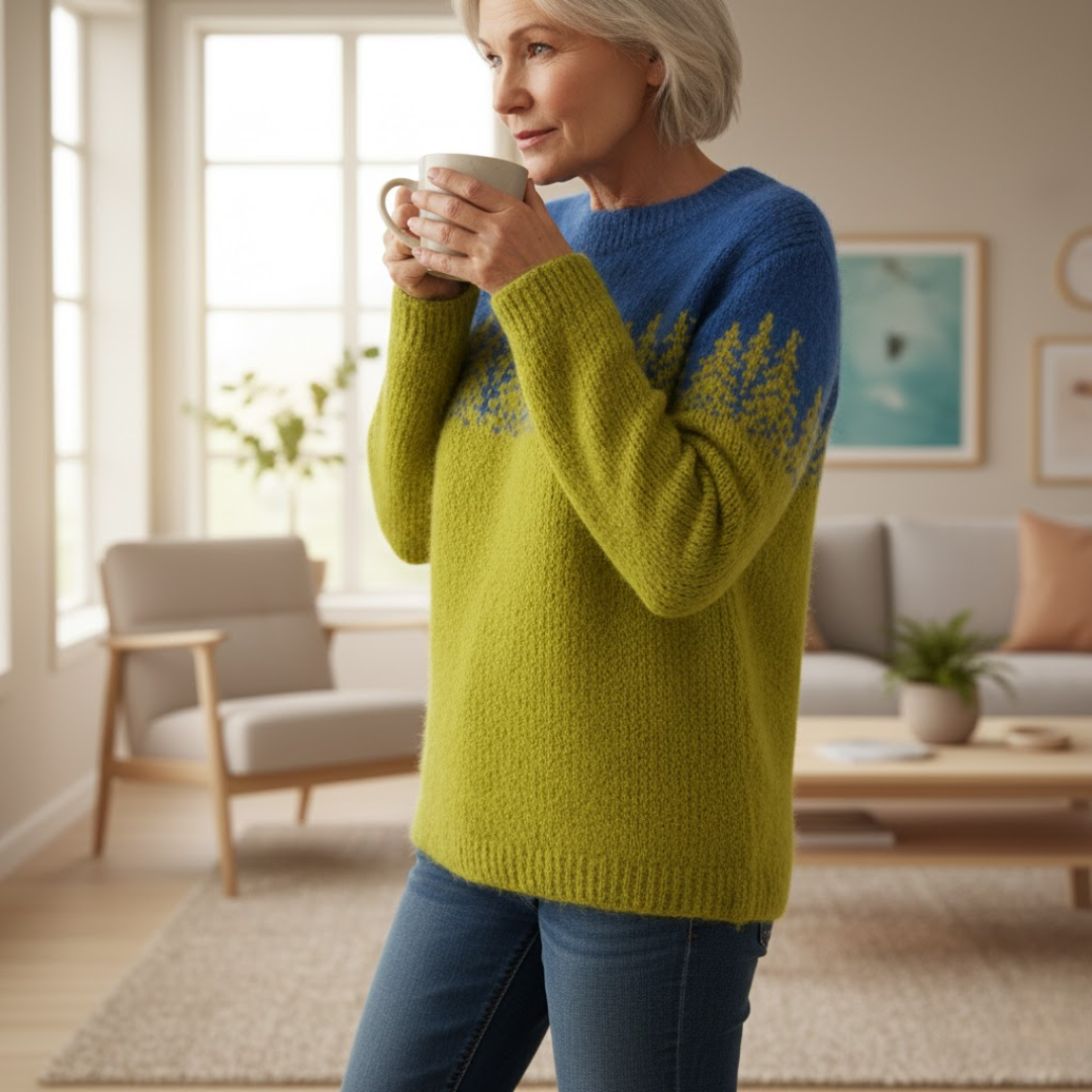 Ett Elyra Sweater förenar mysig värme med tidlös design. Med en vackert mönstrad stickning och en avslappnad silhuett, är det en plagg som ger både komfort och stil—perfekt för kalla vinterdagar, utekvällar eller festliga familjesammankomster.