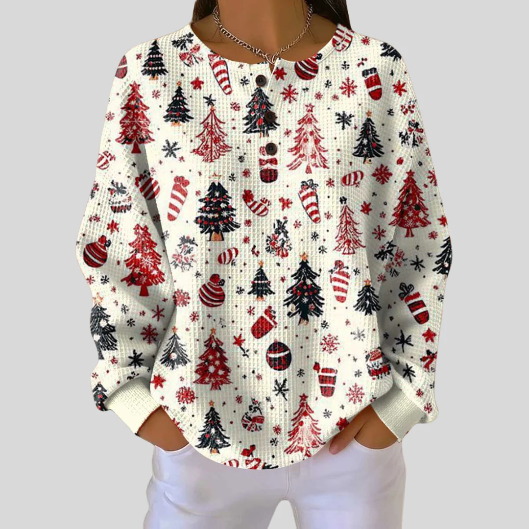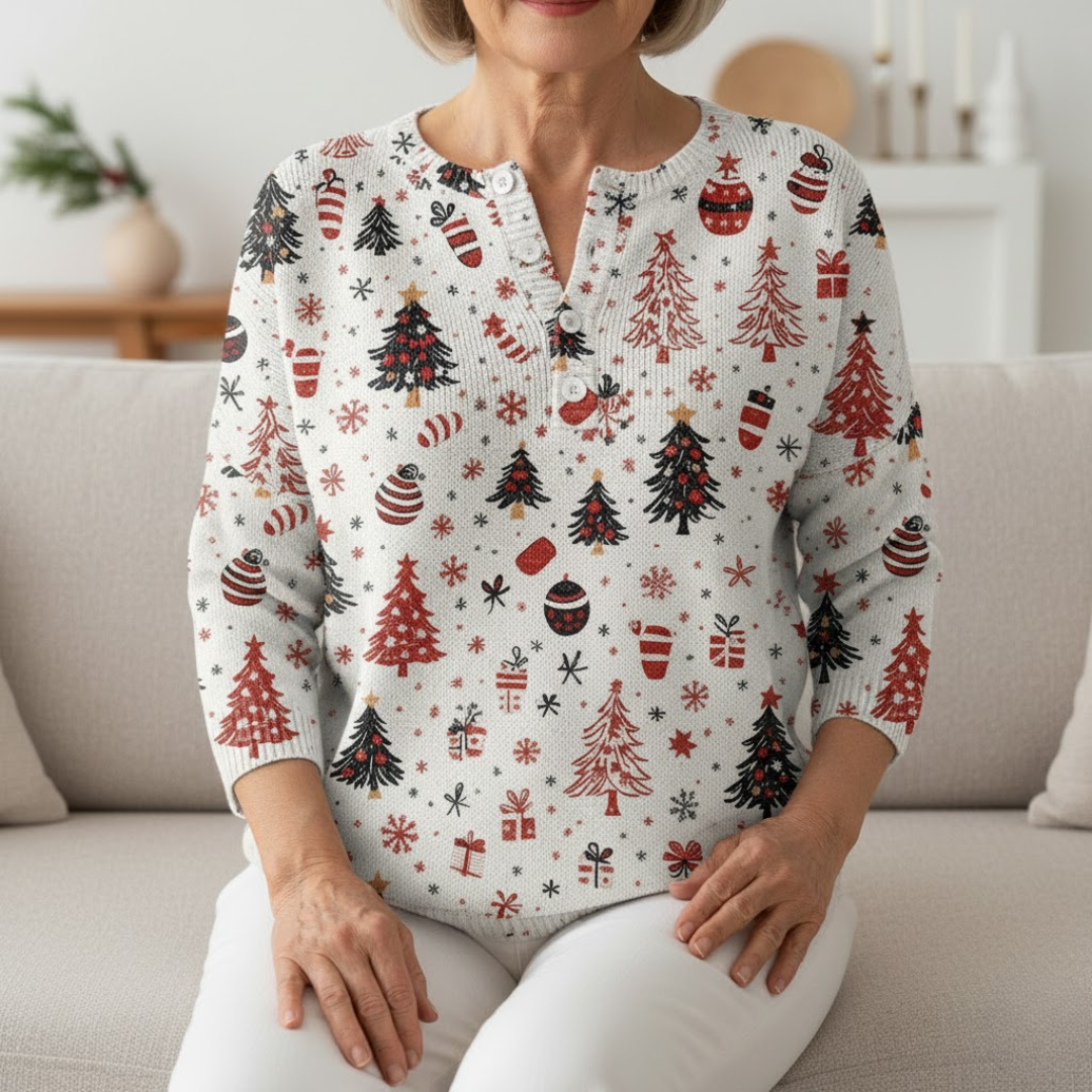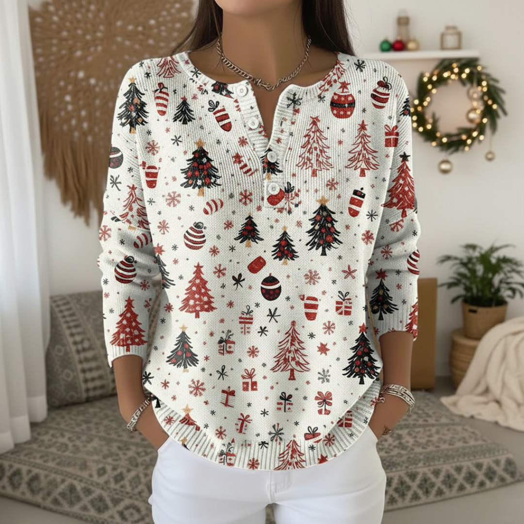 Jultröja med Knappar – Kvinnlig Charm och Julens Värme