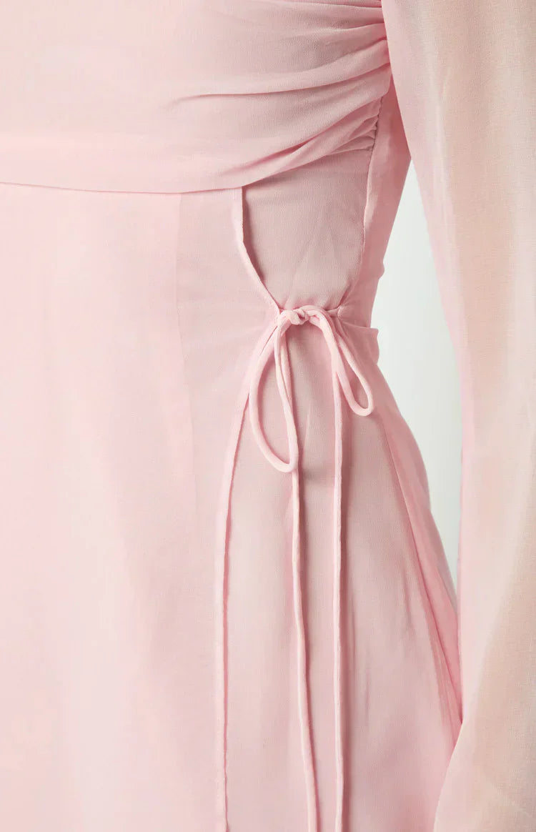 Med en fyrkantig halsringning, långa ärmar och justerbar kjolknut erbjuder denna klänning en smickrande passform som passar alla tillfällen.