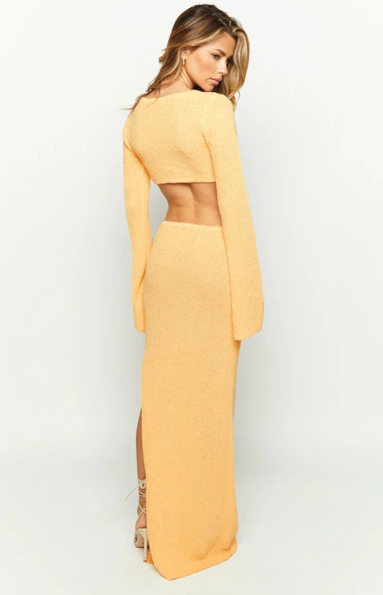 Semesterredo elegans: Vår långärmade maxiklänning är det perfekta valet för din nästa resa. Styla den med klackar och en mini axelväska för en sofistikerad middagslook!