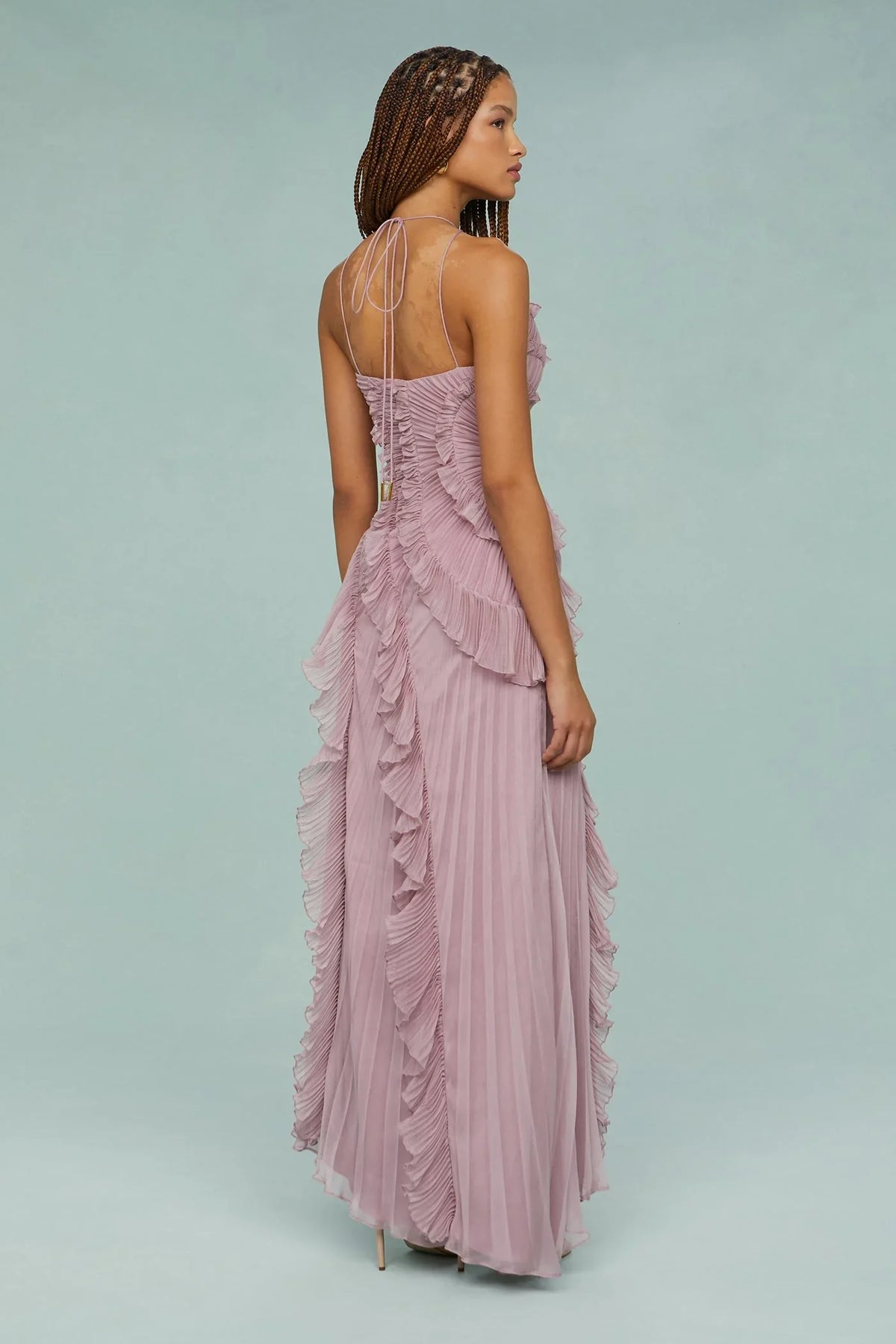 Upptäck Nara Frill Maxi – en showstopper designad för att få huvuden att vända sig! Med skulptural elegans och mjuka rörelser är denna halterneck maxi det perfekta valet för alla festliga tillfällen.